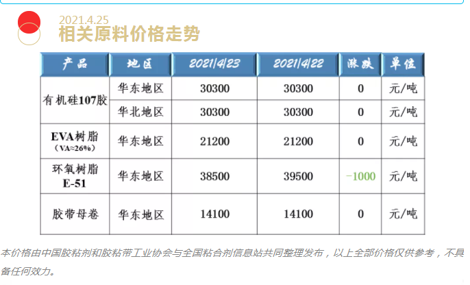 有機硅107、EVA樹脂、環(huán)氧樹脂和膠帶母卷原料價格走勢