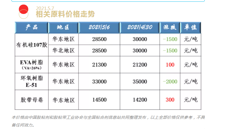 有機(jī)硅107、EVA樹脂、環(huán)氧樹脂和膠帶母卷原料價格走勢