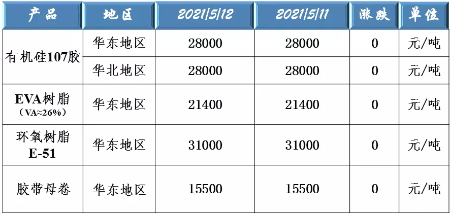 有機硅107、EVA樹脂、環(huán)氧樹脂和膠帶母卷原料價格走勢