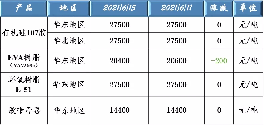 有機硅107、EVA樹脂、環(huán)氧樹脂和膠帶母卷原料價格走勢